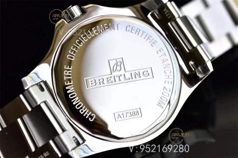 后蓋是密底設計方案,后蓋外界非常五光十色,不僅有字體樣式手工雕琢也有標志的描繪,加工工藝都很好,干脆利落,非常精巧。GF廠后蓋板里邊的鱗型紋理非常美觀,打磨拋光非常詳盡,歷經金屬拉絲處理,實際效果比美真品。機芯選用的是海鷗2836全自動表芯,機械表誤差平穩,非常經久耐用。GF廠百年靈表芯夾板上的處理非常及時,上邊攜刻的金黃英文字母,與直發夾板共同展現圓弧形,近乎完美。