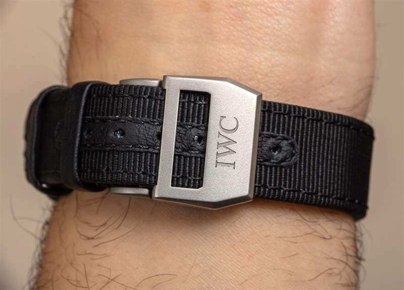 幾乎 45 毫米寬的表殼在手腕上不算太大,但這不是一款小型甚至中型手表。IWC 將它搭配黑色紡織風(fēng)格的表帶,看起來很漂亮,但也有一些缺點。除了看起來非常漂亮之外,我注意到,隨著時間的推移,表帶并沒有像許多其他紡織表帶那樣磨損。表帶很厚,內(nèi)襯黑色皮革,增加了耐用性和舒適度。然而,表帶不是很柔韌,當(dāng)與隨附的折疊展開式表扣結(jié)合使用時,它也不是最舒適的。作為一種快速解決方法,我會嘗試用更簡單的針式表扣替換展開式表扣,或者我會在一段時間后嘗試另一條表帶。好消息是,像這款 TOP GUN 這樣的基本黑白風(fēng)格手表在大量表帶選項上看起來很棒。
