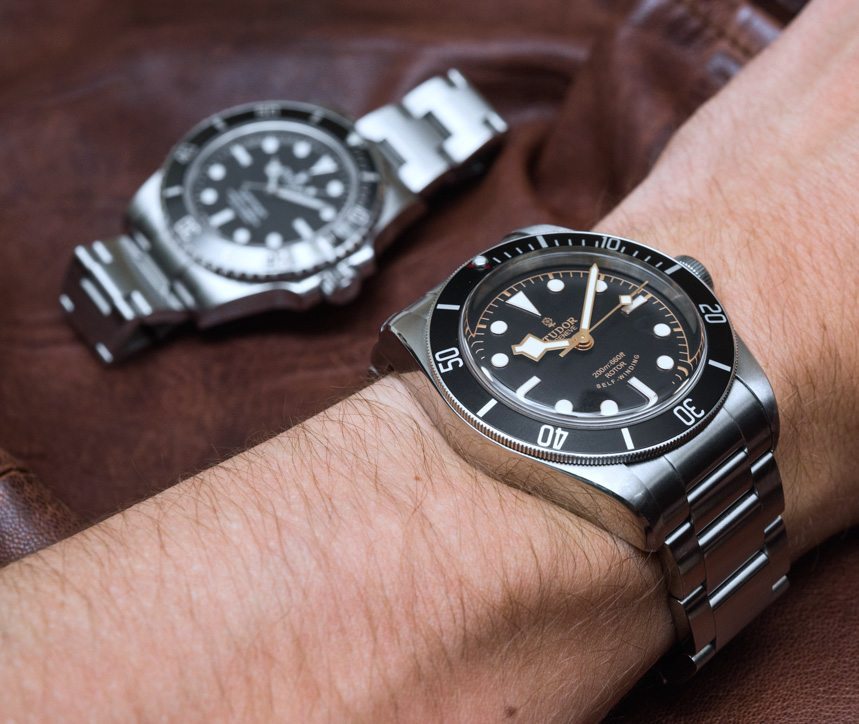 比較: Tudor Black Bay 比 40mm 勞力士 Submariner 略大,帶有 41mm 寬的鋼制表殼,也更厚一些。也許最大的“缺點(diǎn)”是它的鋁制表圈插入材料與勞力士 Submariner 更耐用的陶瓷相比——盡管您確實(shí)在 Heritage Black Bay 中獲得了更多有趣的顏色選擇,例如酒紅色。實(shí)心表盤設(shè)計(jì)在歷史上受到勞力士 Submariner 的啟發(fā),因此差異很小,但很明顯。