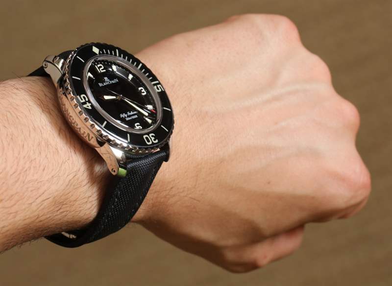 優(yōu)勢(shì):?45 毫米寬和內(nèi)部機(jī)芯,寶珀五十噚 Automatique 5015(aBlogtoWatch 評(píng)論在這里)系列有一個(gè)可用的鋼模型,帶有匹配的表鏈和黑色表盤,在主題上與勞力士潛航者相同。它很昂貴,但它也制作精良且美觀。