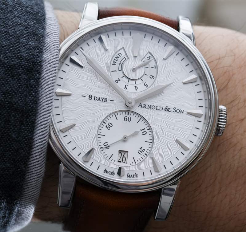 表盤上的易讀性和性感性很高,在我看來,這些表盤恰到好處地融合了優雅和精致,并且有吸引注意力的趨勢。堅固而傳統的指針增添了陽剛之氣,Arnold & Son 甚至能夠在組合中插入日期指示器窗口(在輔助秒盤中)。