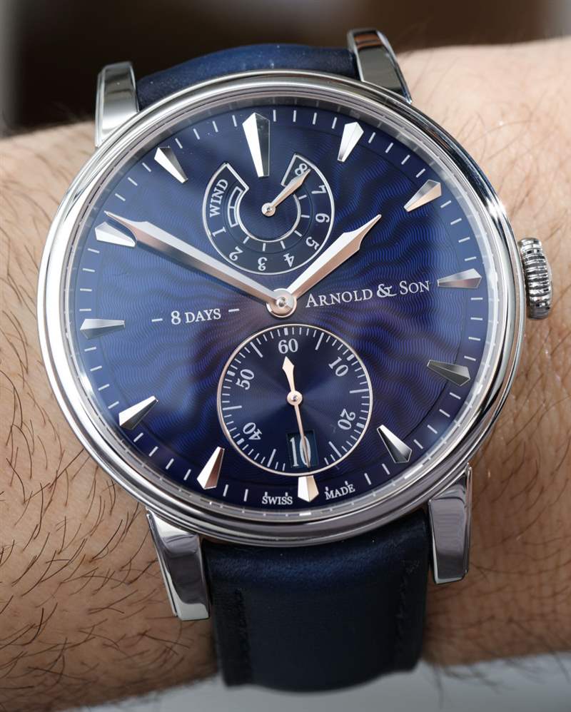 真正讓表盤與眾不同的是機刻扭索飾紋,然后上漆上色。“波浪線”風格的圖案(我敢肯定,這就是古代講法語的鐘表師對它們的稱呼—— “le squiggelle!”)很可愛,Arnold & Son 八天皇家海軍腕表的表盤也很漂亮提供藍色、黑色或銀色……以及漂亮的配套小牛皮表帶。廣告訊息廣告信息結束