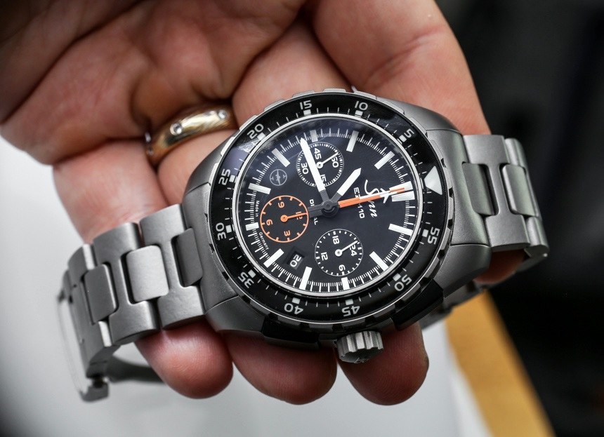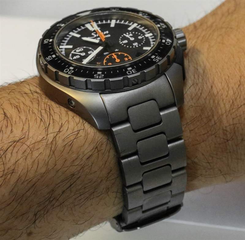 由于減輕了重量,鈦金屬確實(shí)幫助這款相當(dāng)大的手表佩戴起來非常舒適。Tegimented 鈦手鐲非常輕,雖然表殼不是很輕,但如果是鋼制的話會(huì)重很多。44 毫米寬的 EZM 10 具有寬表耳和厚 15.6 毫米的外殼,充分利用了該尺寸(“佩戴大”),因此相對(duì)較輕的 95 克(就是這種情況)非常耐磨。是的,EZM 10 對(duì)于某些手腕來說可能有點(diǎn)小,但我的中小手腕可以很好地容納它。