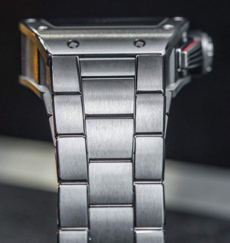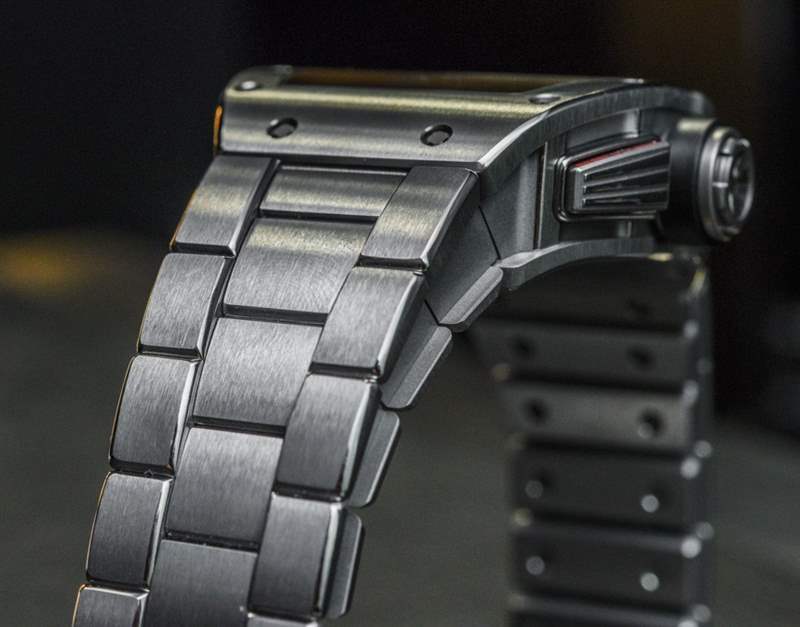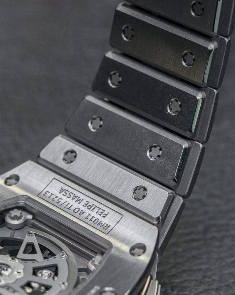 與 Richard Mille 的所有產品一樣,Richard Mille RM 011 的手鏈選項價格昂貴,但設計精心,更重要的是,構造。每個鈦鏈節都經過單獨加工和拋光。沒有沖壓件或任何不是單獨生產然后手工完成的東西。將手鏈固定在一起的是 Richard Mille 標志性的“花鍵螺絲”,其末端有一個“彈簧式”蝴蝶式展開式表扣。這款手鏈沒有隱藏任何特殊技巧或功能,但它看起來和感覺起來都很棒。