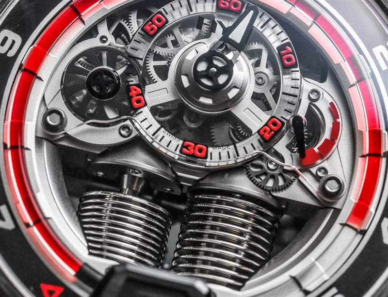 HYT H4 內(nèi)部搭載品牌獨有的手動上鏈 HYT 401 機械機芯,以 28,800 次/小時(4 赫茲)的頻率運行,動力儲存為 65 小時。HYT H4 Gotham 手表的背面有一個有色藍寶石水晶,與 HYT 所說的手表的“哥特式主題”相得益彰。未來限量版 HYT H4 車型的主題當然會更加夏日,色彩更加鮮艷。HYT H4 的黑色和一絲紅色為這款手表打造了帥氣而又黑暗的個性——這無疑是酷炫的。