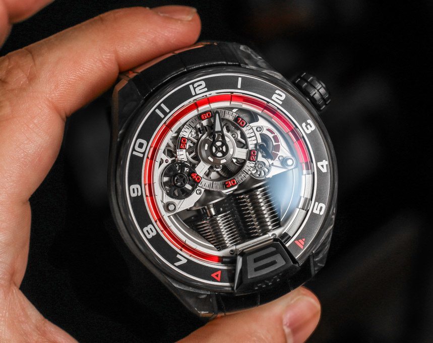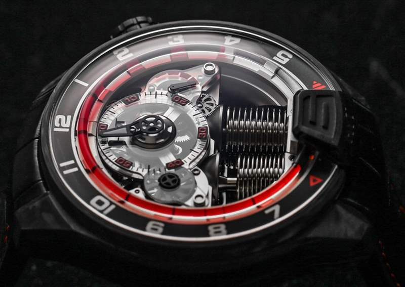 雖然運動很酷,但需要一點點。例如,您不能快速設(shè)置時間,而是在這樣的手表中設(shè)置得更慢一些。原因在于液體小時指示器系統(tǒng)的工作原理。緩慢轉(zhuǎn)動表冠會移動其中一個波紋管,液體會因壓力變化而做出相應(yīng)反應(yīng)。因此,您在更改時間時需要輕柔一點——但我認為,考慮到這一機械概念的前衛(wèi)本質(zhì),大多數(shù)人都會自然而然地這樣做。