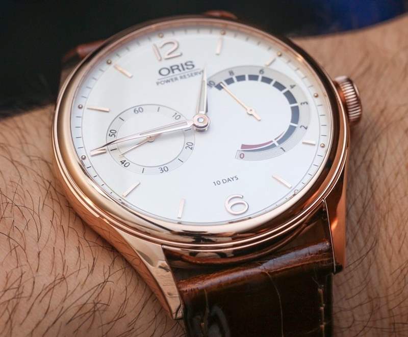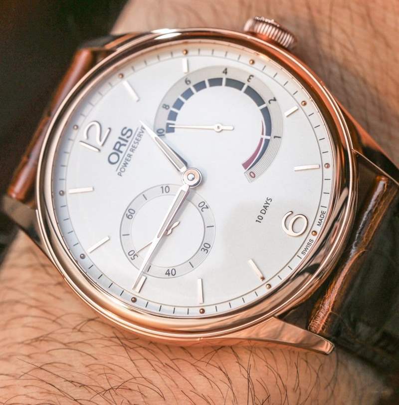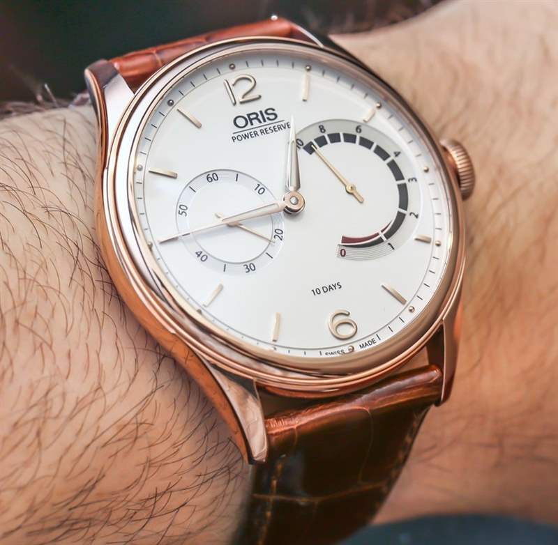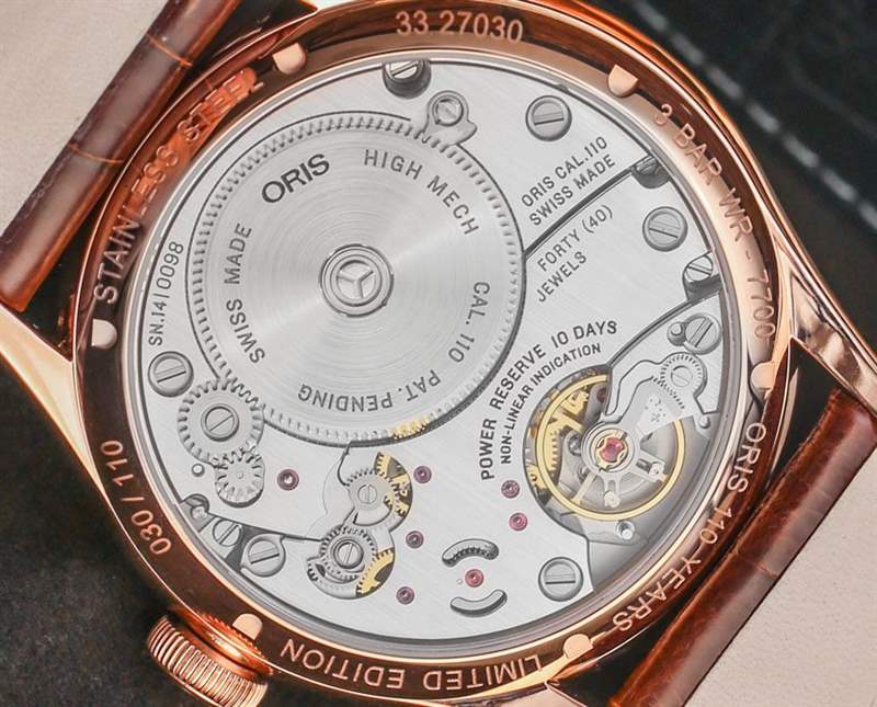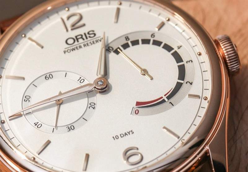 更有趣的是整整 240 小時或 10 天的動力儲存長度。這意味著 Oris Calibre 110 在以 21,600 bph (3Hz) 的頻率運(yùn)行時,可以在繞組之間運(yùn)行一周以上。表盤上的“10 天”小標(biāo)簽提醒您這一事實(shí)。那個較低的標(biāo)簽我不介意,但我確實(shí)認(rèn)為 Oris 在他們的品牌標(biāo)志下印刷“Power Reserve”并不是特別有用。這就像汽車公司在車身上放置無用的標(biāo)簽和標(biāo)志一樣。我記得我在成長過程中看到諸如“燃油噴射”和“全輪驅(qū)動”之類的愚蠢的東西出現(xiàn)在汽車的側(cè)面或后部。這會喚起品味和區(qū)別嗎?這對路上的其他汽車是否有某種有價值的用途?或者這只是某種奇怪的廣告,目的是幫助車主對他們的購買感覺更好,并且讓鄰居們意識到他們自己的汽車可能沒有這樣的功能。就個人而言,我不希望我的車上有那些東西。
