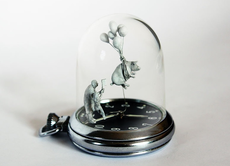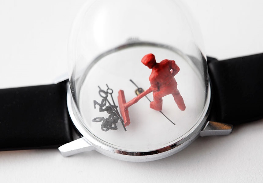 Wilcox 將這些作品稱為“鐘表雕塑”,并以他購置的古董腕表和懷表為開端。第一步是移除水晶,并用一個高大的圓頂代替它們,為他創(chuàng)作的小雕塑和小雕像騰出空間。Wilcox 聲稱自己的靈感來自真實和想象的情境,并將手表指針的運動作為藝術(shù)的一部分。這些小雕像實際上是放在手表的指針上。廣告留言廣告信息結(jié)束