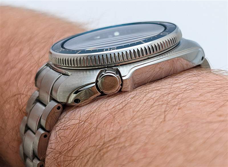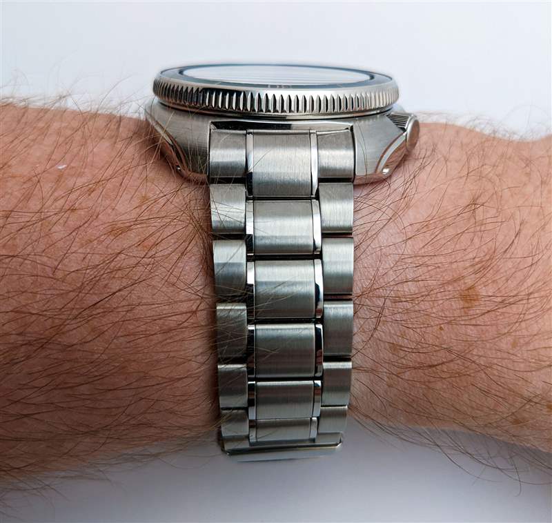 精工將 Prospex SLA063 與兩個包含的表帶選項配對。其中首先是對 Seiko 6105 的黑色橡膠“輪胎痕跡”表帶進行現代重新構想,但我們的評測樣品送達時只有不銹鋼表鏈。Seiko 的手鐲在一些愛好者中名聲不好,但 SLA063 比該品牌的普通手鐲產品有幾項切實的改進。對于初學者來說,雖然乍一看可能并不明顯,但中心鏈節邊緣的拋光口音實際上是完全獨立的元素。制作這些額外的窄鏈節的決定使精工能夠在此處從平滑的垂直拉絲到明亮的拋光實現完美清晰的過渡,并在兩種飾面之間具有深陰影邊界的額外好處。表扣也是 Seiko 更實惠型號的顯著提升,采用全機械加工的雙按鈕設計,為手腕上的手鐲增添了令人愉悅的重量感和堅固感。話雖如此,這個表扣兩側的潛水員延伸部分非常難以操作,其鉸鏈偏心位置在實際佩戴條件下可能會使手表略微失去平衡。最后,實心末端鏈節的外形比 SLA063 的凸耳明顯更纖細,這會導致明顯的下降,這可能會阻止習慣于嵌入式末端鏈節設計的愛好者。其鉸鏈式偏心位置在實際佩戴條件下可能會使手表略微失去平衡。最后,實心末端鏈節的外形比 SLA063 的凸耳明顯更纖細,這會導致明顯的下降,這可能會阻止習慣于嵌入式末端鏈節設計的愛好者。其鉸鏈式偏心位置在實際佩戴條件下可能會使手表略微失去平衡。最后,實心末端鏈節的外形比 SLA063 的凸耳明顯更纖細,這會導致明顯的下降,這可能會阻止習慣于嵌入式末端鏈節設計的愛好者。
