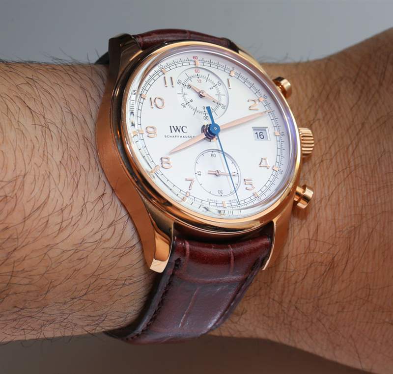 關(guān)于 IWC 葡萄牙經(jīng)典計時碼表,您需要了解的兩個最重要的細(xì)節(jié)是它有一個 42 毫米寬的表殼(有精鋼款或這里所見的 18k 玫瑰金款),以及它包含 IWC 萬國表自制機芯 89361自動計時機芯。42 毫米對于葡萄牙人來說是一個很好的尺寸,與非“經(jīng)典”型號相比,這些手表的表殼更厚、更陽剛。你有更結(jié)實的凸耳和更厚的邊框,現(xiàn)在已經(jīng)變成圓形而不是更平坦的形狀。雖然 42 毫米寬的表殼更大,但考慮到表殼的所有柔和曲線,它具有更光滑的外觀。有些人會更喜歡標(biāo)準(zhǔn)葡萄牙語的更簡約的角度方法,但這實際上是一個品味問題以及手表在手腕上的位置。