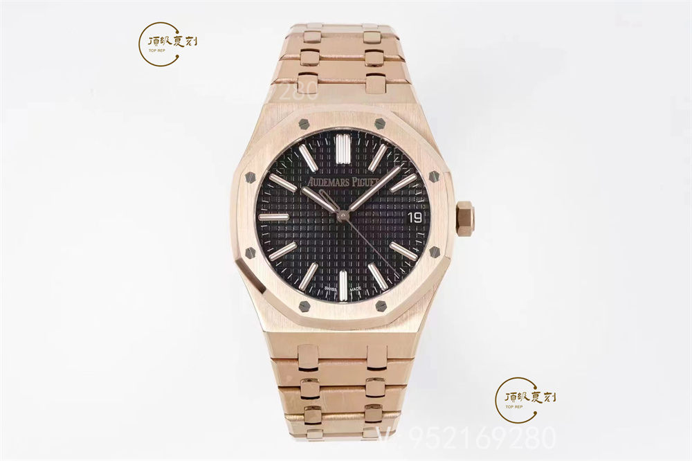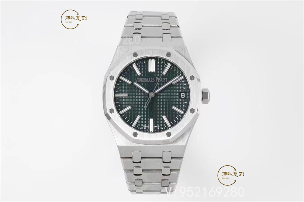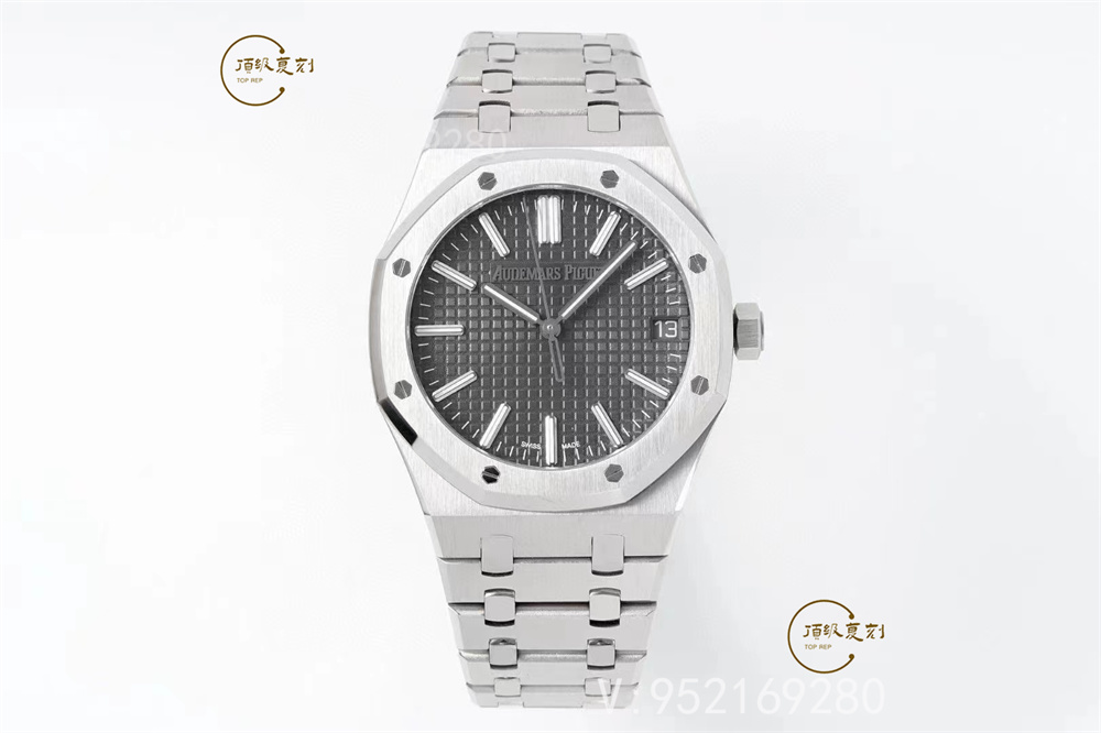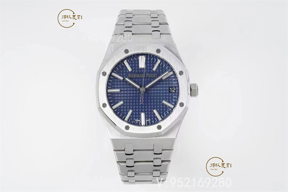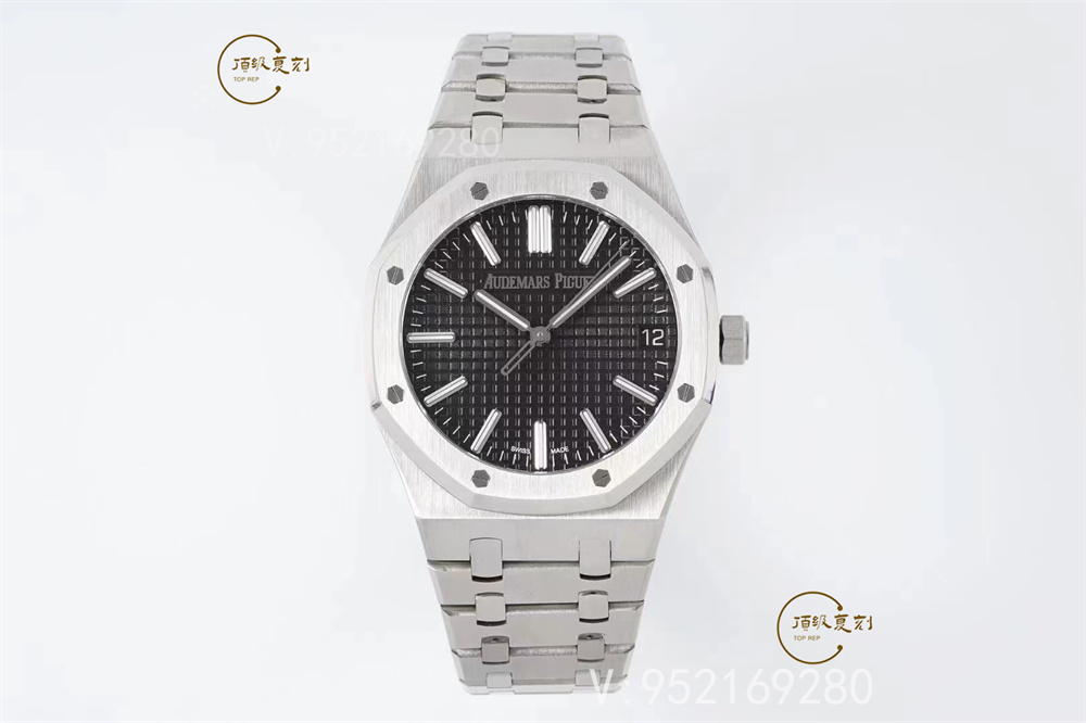 表帶細節方面,aps廠15510表帶首四個鏈節從平行四邊形改為梯形,表帶寬度逐漸遞減,令線條更具流線美感,鏈節也較為纖薄,戴上手的時候也更輕盈!鋼帶的做工無可挑剔,比市面上任何鋼帶表做工均要更上一層樓,鋼帶頭粒和表頭銜接的“緩沖帶”的松緊程度與正品一模一樣。體驗精妙,感受不同!APS出品,必屬精品!