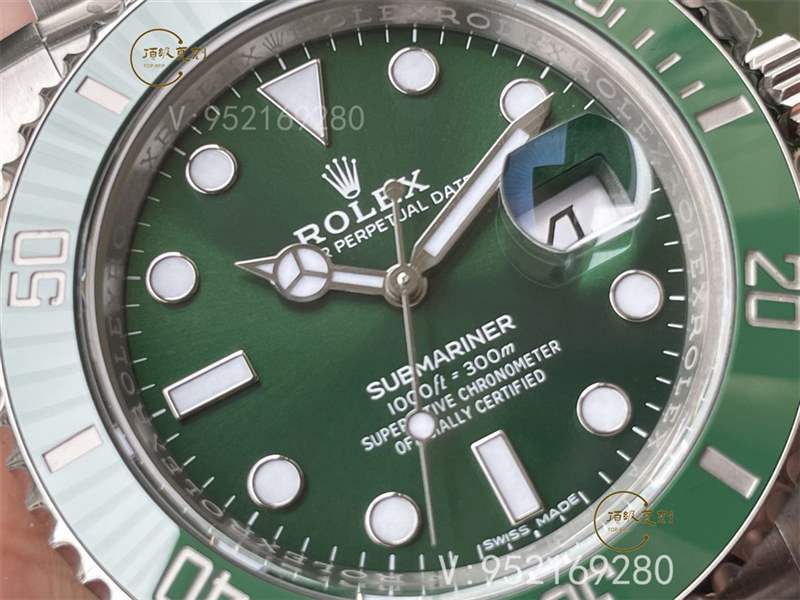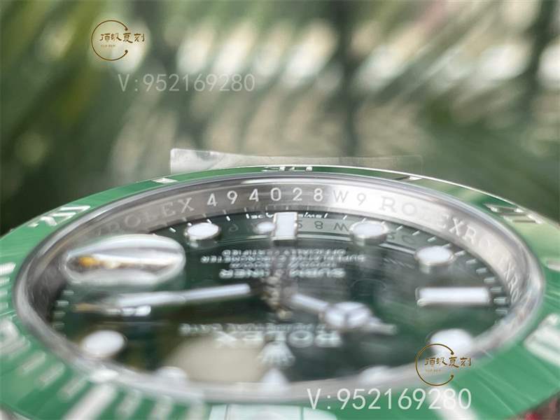 圈口:獨家clean v4版本的設計亮點就在綠色的把握上,和原裝圈口拿著對比,基本上沒有色差,是清脆的金綠色,?陶瓷圈夜明珠,是溫潤如玉夜光珠,不是死白色的,?clean陶瓷圈+夜光珠完美復刻原裝的?。像C廠的陶瓷圈夜明珠凸起剛剛好、是平整的不會高出來很多,別的廠夜明珠凸起高很多,如果夜明珠凸起來高很多是不對版,所以大家可以通過夜明珠去分辨。單向旋轉的陶瓷圈口,聲音非常的清脆。轉動一圈是120個卡槽點,可以根據聲音去判斷。還有一個重要的細節點,夜明珠對準12點位置,向左旋轉10下(根據聲音來判斷),夜明珠的位置一定是停在十一點刻度位置。