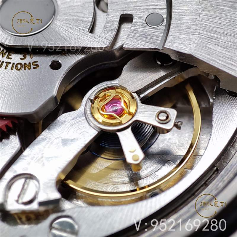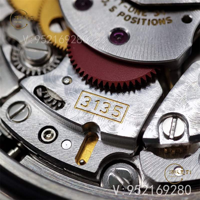 整體:表殼采用的是904的實心鋼,904精鋼也是現在的復刻表廠家都在使用的材質。904鋼耐磨度比316鋼好。惡劣環境下防腐蝕更好。而且904鋼細心比照316鋼更加有光澤。倒角和弧線貼合接近原裝,美還原原裝的手感和氣質,跟正品的大小厚度基本一模一樣,表殼上裝配表帶的內側,刻字同樣不含糊,細節方面也是非常到位!同時腕表把頭也是增加了旋入式的表冠,三扣鎖三重防水系統。表冠左右兩邊有護肩保護,周邊齒輪有助于增加上鏈手感,把頭頂端鐫刻的ROLEX經典皇冠,大小位置一致。