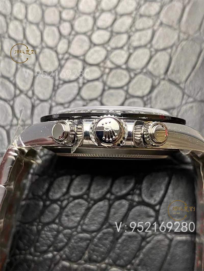 對于腕表側面大拋光處理很為到位,腕表也進行了包邊工藝,當然腕表也不會出現刮手感,同時對于右側則是為計時時間把頭,把頭上面的刻字等都是非常清晰,然而對于計時功能也是同步了原版魅力,當然對于計時功能腕表,在后期使用中,盡量不要長時間去使用,避免增加腕表的負荷力度!