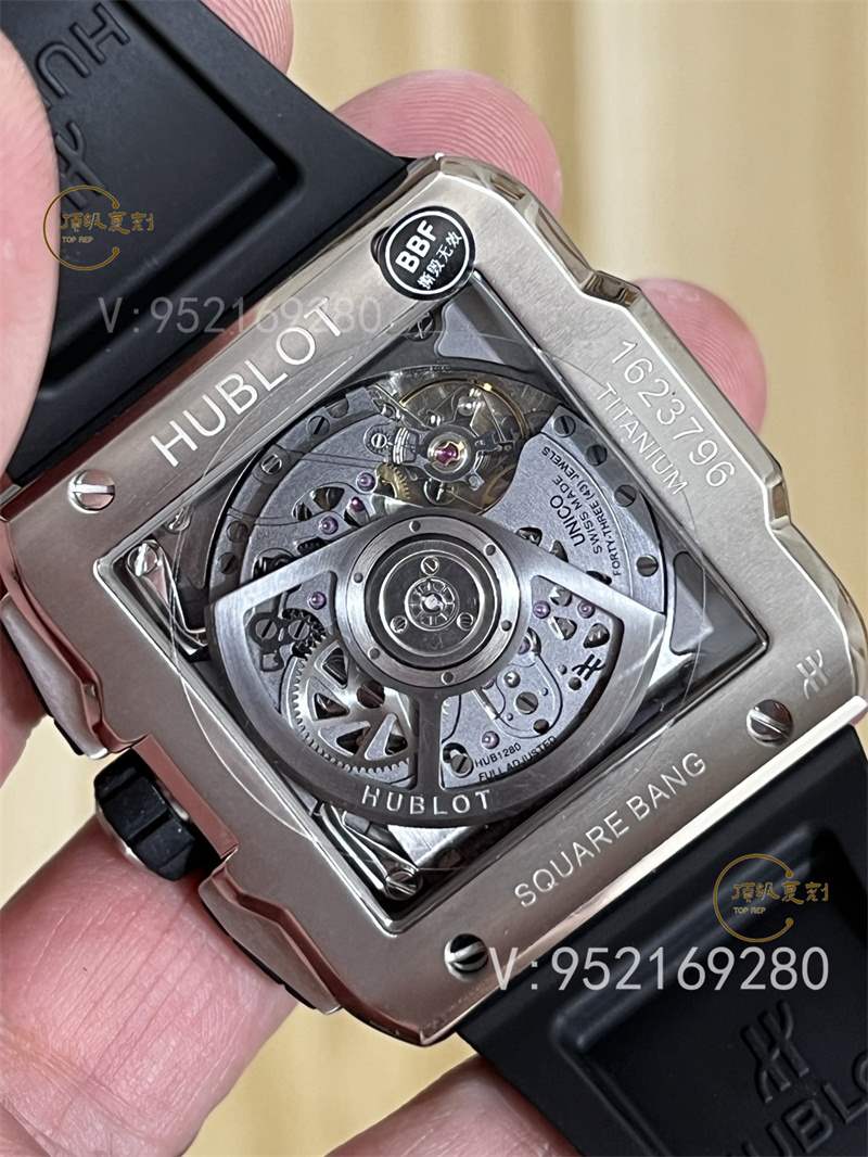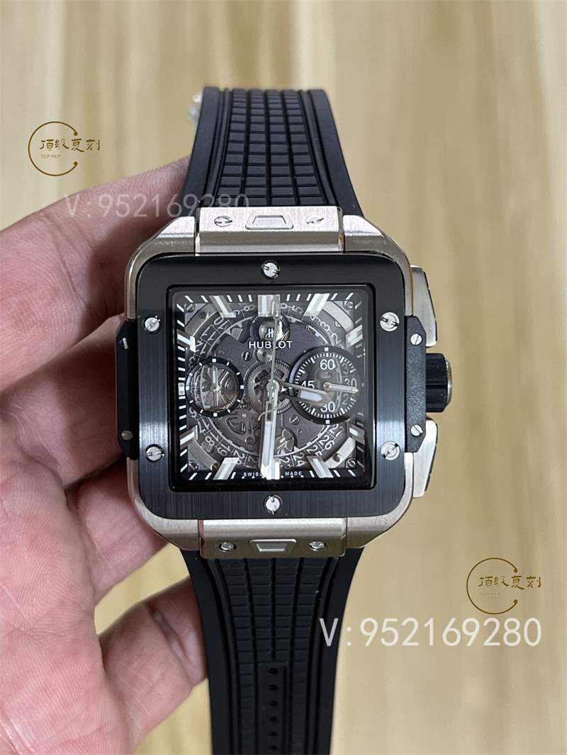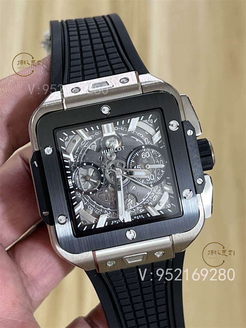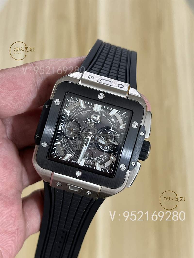 全新核心作品 HB SQUARE BANG UNICO系列,宇舶方形五級鈦金+高透藍(lán)寶石字面+一鍵快拆系統(tǒng),6點(diǎn)鐘位置設(shè)有清晰可見的導(dǎo)柱輪,42mm。全透也是方形的設(shè)計(jì)精品可以說很少,bbf出,zf的宇舶也是這個(gè)代工的,做工信心有保證!計(jì)時(shí)機(jī)芯也是7750計(jì)時(shí),凡是計(jì)時(shí)表除了迪通拿之外,復(fù)刻表統(tǒng)一7750,看到假表的計(jì)時(shí)款基本不用再問我什么機(jī)芯了。