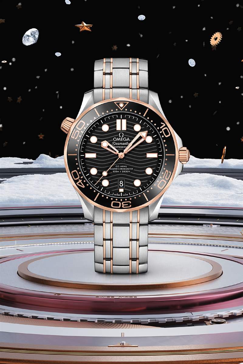 歐米茄(OMEGA)來說,最先呈現在腦海里的當然就會是海馬系列 300米潛水表,這是我心目中的「萬能表款」,擁有一只別無所求。最新的42毫米至臻天文臺表款,以不銹鋼鋼與 Sedna 18K金搭配,外觀更加華麗,而且諸多細節更加精致而美觀:其表圈采用閃亮的黑色陶瓷,潛水刻度經 OMEGA Ceragold 技術制成,夜光清晰明亮而不刺眼。表盤亦以拋光黑色陶瓷制成,飾以激光鐫刻波紋圖案,特別耐看。鏤空指針和浮雕小時刻度由 Sedna 18K金制成,并覆以白色 Super-LumiNova 夜光涂層,而排氦氣閥門則以圓錐形造型呈現,都體現出設計者追求完美的用心。看似熟悉的經典,其實有著諸多的改進,更加好用且漂亮。