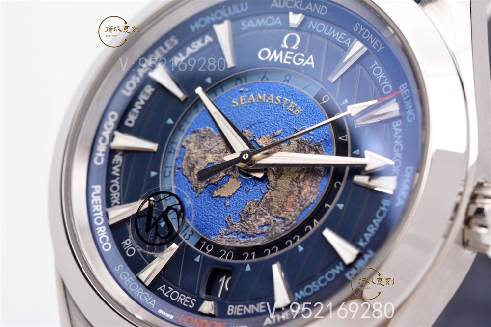 VS廠海馬世界時腕表的外觀采用了精鋼材質(zhì),經(jīng)過精細(xì)的拋光和拉絲處理,展現(xiàn)出極佳的質(zhì)感。表盤中央的浮雕地球影像,利用激光燒蝕技術(shù)制作,生動地呈現(xiàn)了北極俯瞰視角下的地球景觀。藍(lán)色海洋與浮雕陸地的鮮明對比,賦予了表盤獨(dú)特的視覺沖擊力。